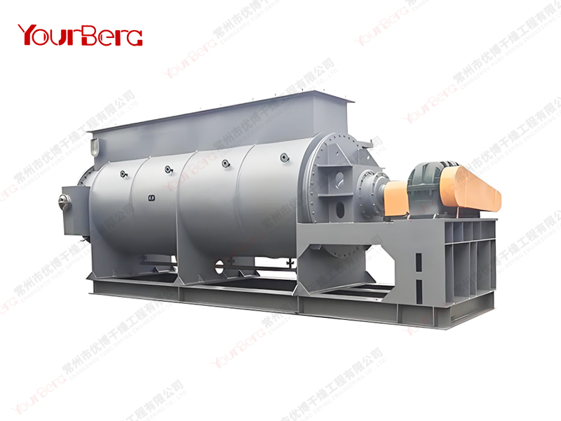(1) .設備結構緊湊,污泥烘干設備裝置占地面積小。干燥所需熱量主要是由排列于空 心軸上的空心葉片壁面提供,而夾套壁面的傳熱量只占少部分。所以單位體積設備的傳熱面大,可節省設備占地面積,減少基建投資。??(2) .熱量利用率高。污泥干燥設備采用傳導加熱方式進行加熱,所有傳熱 面均被物料覆蓋,減少了熱量損失;熱量利用率可達85%以上。?···